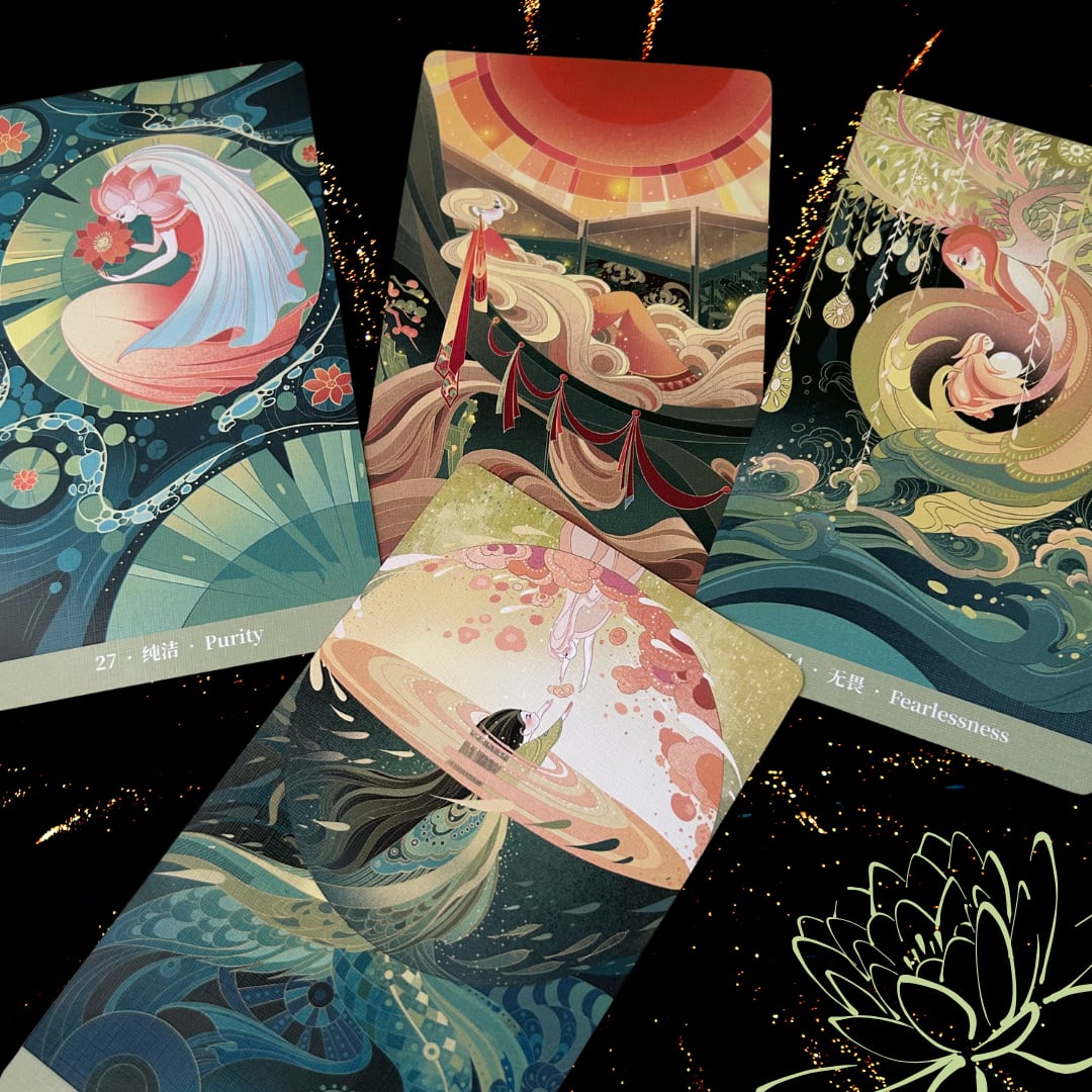 内にある心模様を流れるような曲線美の素敵な絵と共に表現したカード❤️心に浮かんでは、形を変え、消えていく、私たちの心の流れを感じられるような美しくて穏やかなオラクルです✨