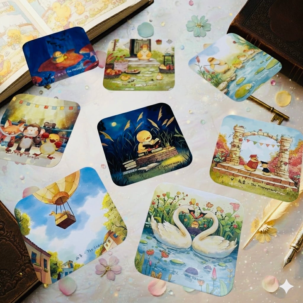 小さなアヒルちゃんとその家族の日常や冒険が描かれたカード❤️私たちが子供の頃に体験していた何気ない日々やちょっとした冒険心を思い出させてくれて、日々への感謝や、ちょっと新しい事をやってみようかな♪なんて、思わせてくれます❤️ほのぼのとしてる中にも日々の喜びを感じられるタロットです⭐️